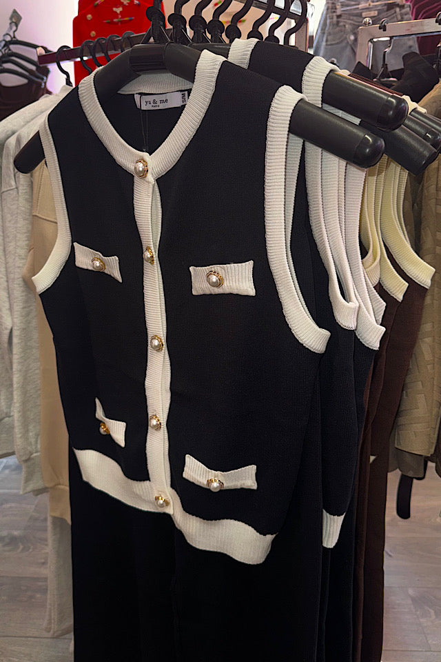 Black Contrast Waistcoat & Wide Leg Trouser Co-Ord
