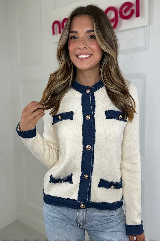 Cream Denim Trim Cardigan