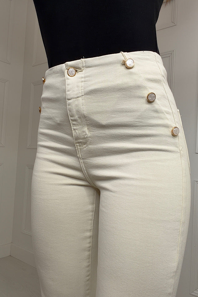 Danni Pearl Pocket Button Jeans In Cream