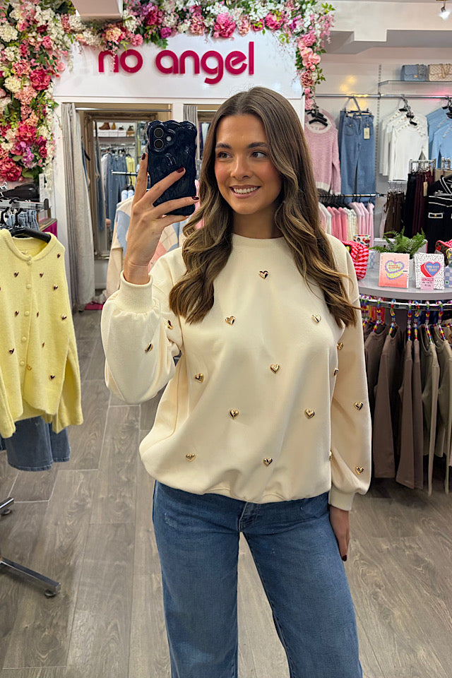 Gold Heart Jumper In Cream
