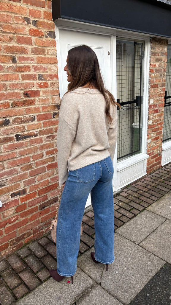 Imogen Gold Heart Cardigan In Oatmeal