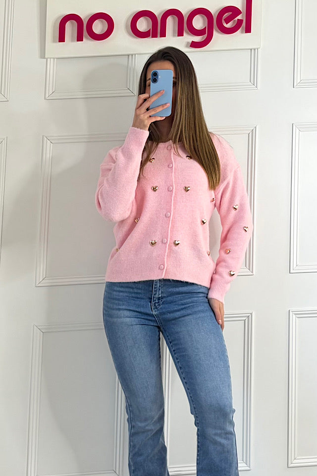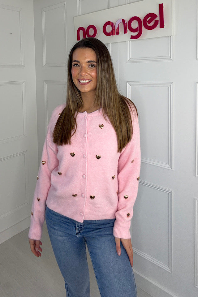 Imogen Gold Heart Cardigan In Pink