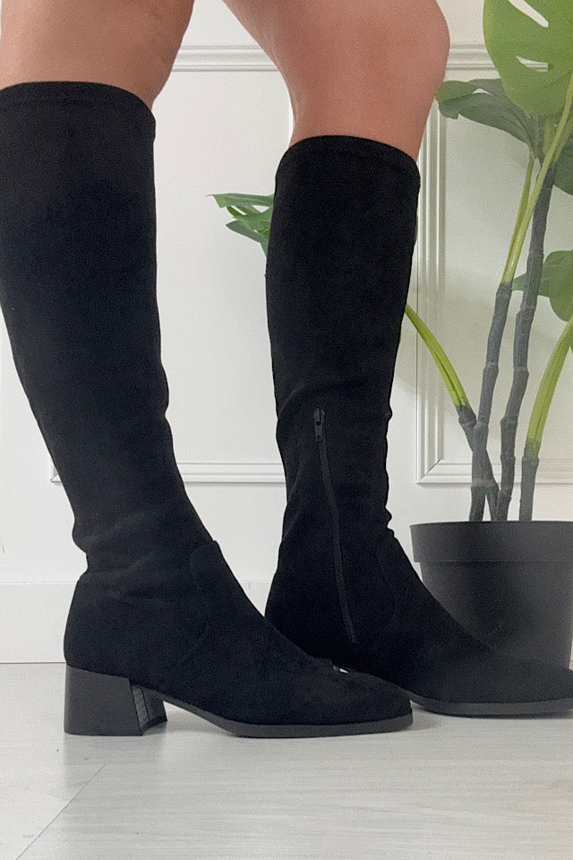 Maddie Black Long Suedette Boots