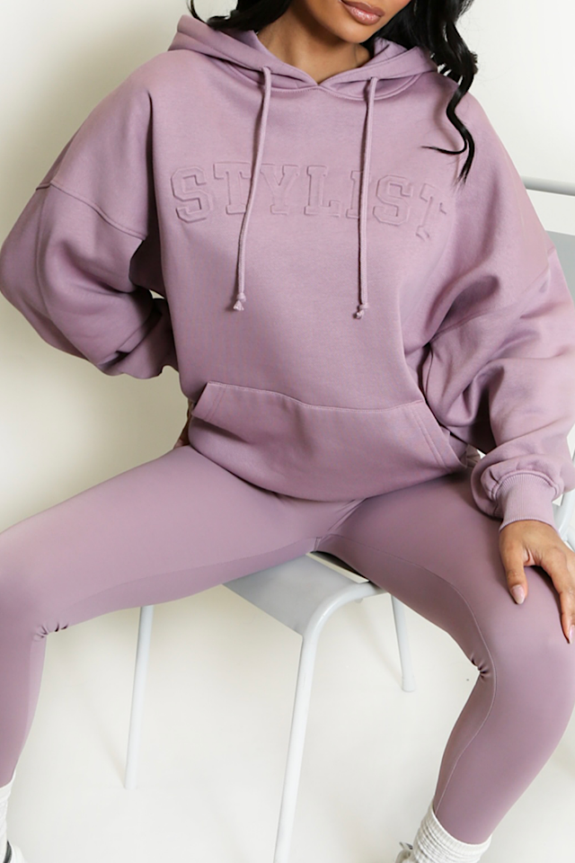 Mauve Stylist Slogan Oversized Hoodie