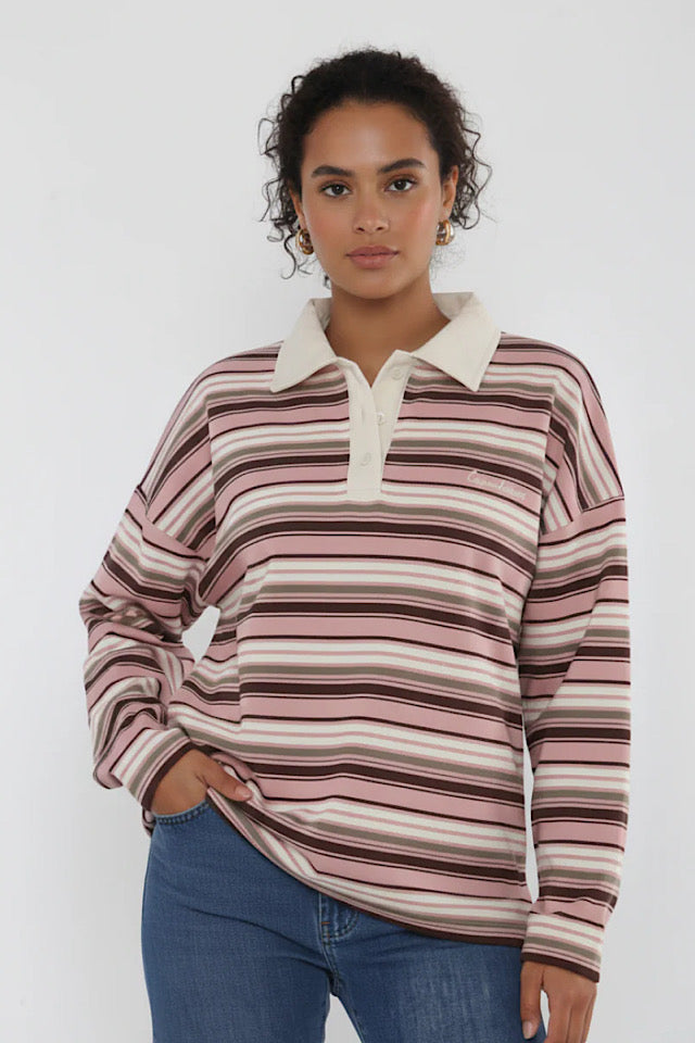 Melanie Copenhagen Pink Stripe Collar Sweatshirt