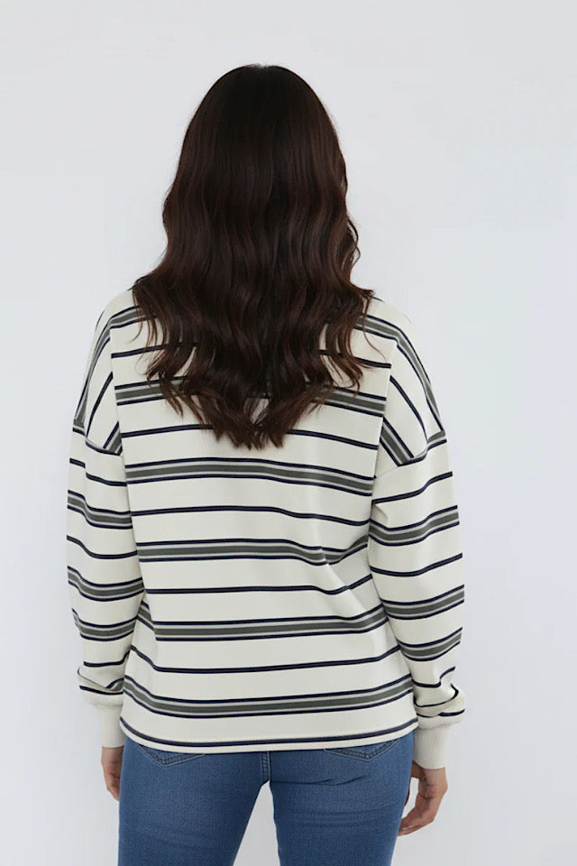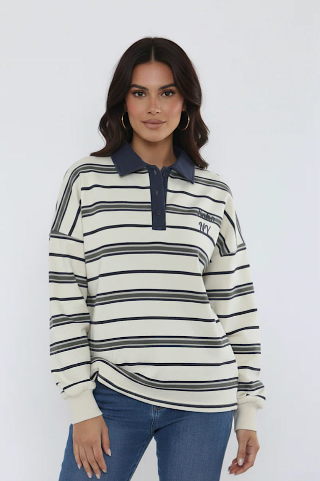 Melanie SOHO Striped Collar Sweatshirt In Navy