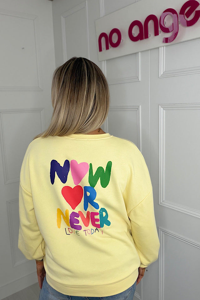 NOW OR NEVER Back Slogan Sweatshirt In Lemon