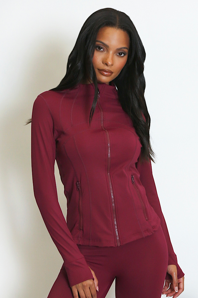 Sculpted Gym Jacket And Leggings Set In Burgundy